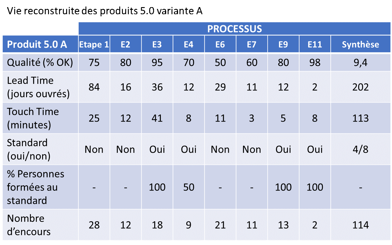 (« lead time » : le délai, ici en jour, et « touch time », la charge de travail pour les personnes impliquées, ici en … minutes)
