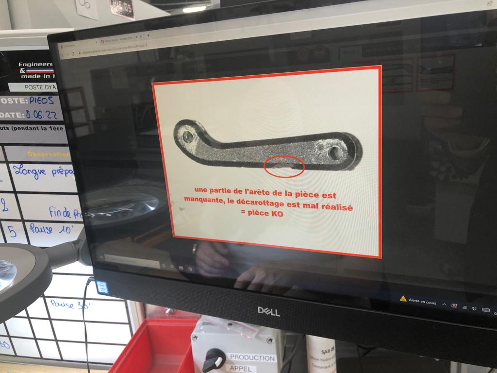 Présence à l’écran du standard relatif à la pièce en cours de production sur chaque poste de travail, à la main de l’opératrice, sans déplacement.