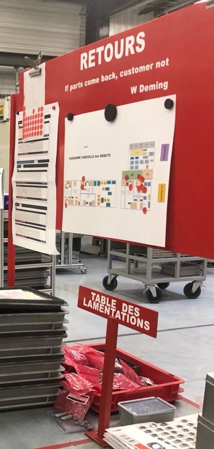 Table de lamentation : collationnement et analyse des bacs rouges (pièces retournées par les clients).«