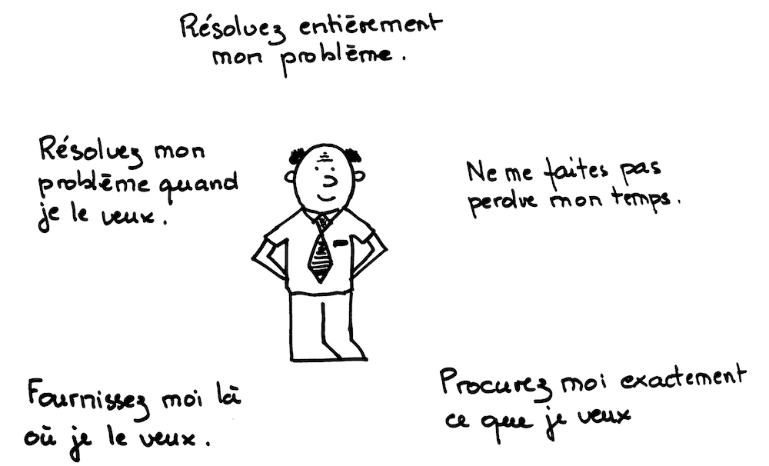 Deuxième point qui me laisse perplexe dans le DMAIC : la place donnée au client n’est pas suffisante. Bien sur, les experts le préconisent mais ils mettent la barre tellement haut que c’en est décourageant : « ces démarches de collecte et d’analyse de données propres au Six Sigma peuvent être coûteuses, longues et complexes. Il est généralement nécessaire de mettre en place des outils de suivi, de recueillir et d’analyser des données, de tirer des conclusions en se basant sur des données statistiques… »