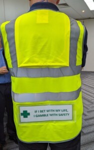Chaque usine Toyota dans le monde où je suis allé possède une « barrière de sécurité » à l’entrée de l’usine. Cela symbolise qu’un employé entrant dans l’usine est responsable de sa propre sécurité (et de celle des autres). Le premier comité de sécurité et de santé et les activités organisées par la Semaine de la sécurité chez Toyota Motor remontent à 1938, quelques années seulement après sa création en 1933. Leur objectif est zéro accident, en se concentrant particulièrement sur les dangers liés (1) aux machines en mouvement, (2) aux objets lourds, (3) contact avec des véhicules, (4) chutes, (5) choc électrique et (6) températures élevées. La sécurité est également l’un des principaux volets du Toyota Hoshin Kanri, leur structure permettant de fixer des objectifs de haut en bas dans toutes les hiérarchies. J’ai même trouvé des rappels sur la sécurité au dos de certains de leurs gilets de sécurité à haute visibilité, déclarant : « Si je parie avec ma vie, je joue avec la sécurité. ». (Même si pour moi, cela se lirait mieux dans l’autre sens : « Si je joue avec la sécurité, je parie avec ma vie. »)