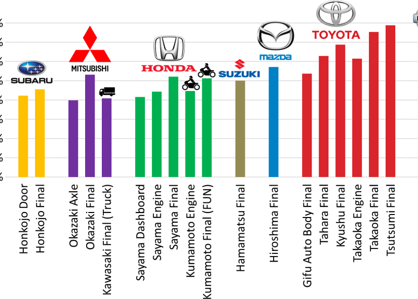 Il y a quelques années, j’ai effectué un grand tour de l’industrie automobile japonaise. Dans le cadre de cette visite, j’ai mesuré le pourcentage de temps où un opérateur crée de la valeur sur une ligne d’assemblage. J’ai également demandé à certaines usines leur ratio de superviseurs par rapport aux responsables de première ligne.